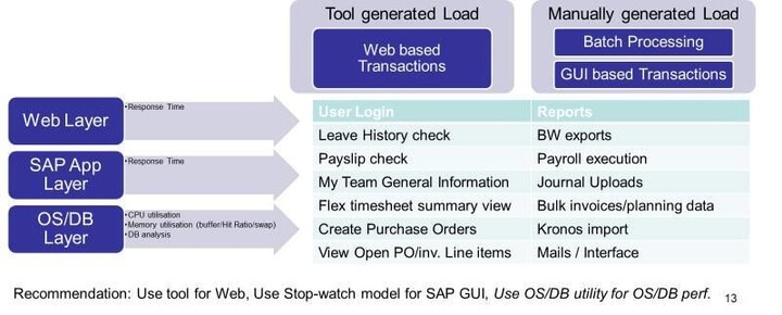 - Determine whether the to-be SAP system is capable of supporting the target number of concurrent users (400) on SAP FIORI portal while retaining its functional stability and responding within pre-defined guidelines.